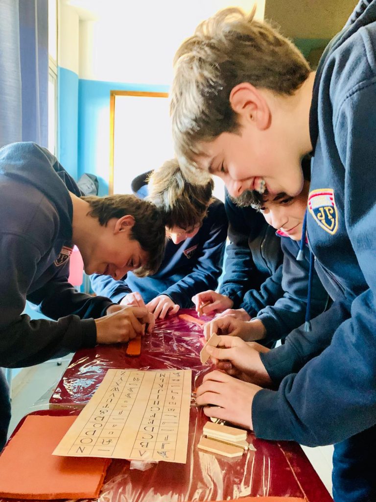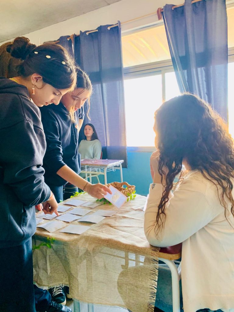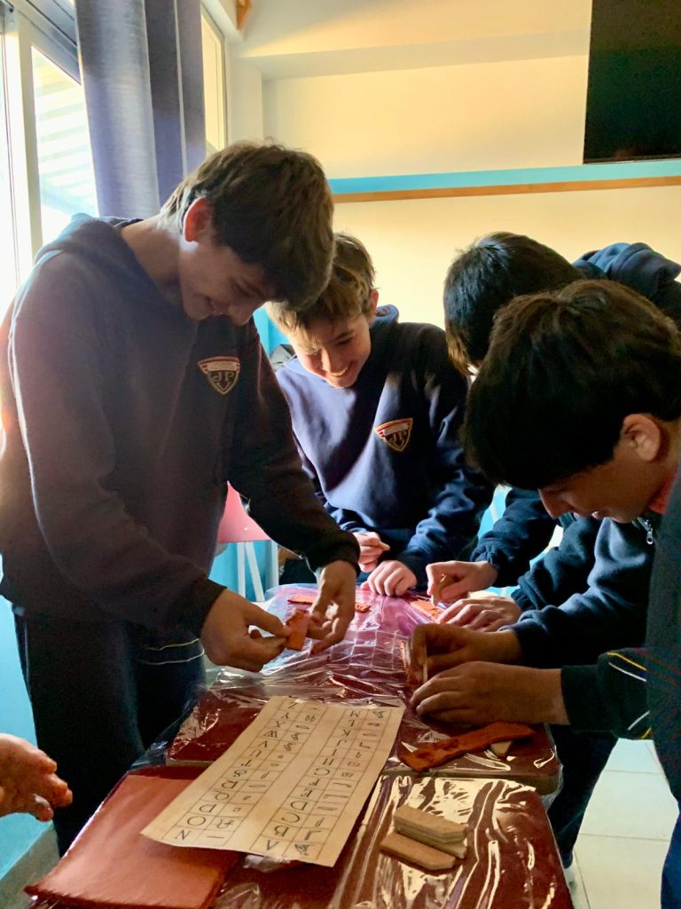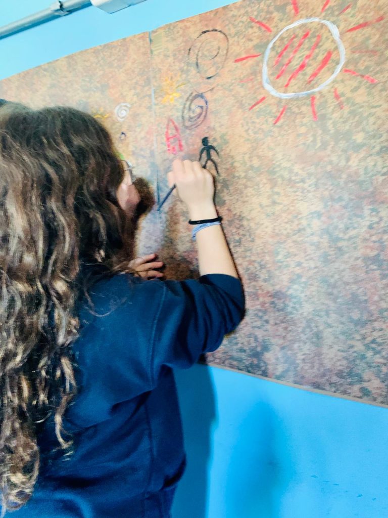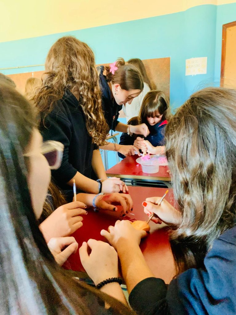 Las estudiantes del 2° EMS opción Artístico llevaron el museo al liceo y presentaron aspectos del arte y de la arquitectura de la Prehistoria, Mesopotamia y del Antiguo Egipto a estudiantes de 7°. A lo largo del recorrido por diferentes estaciones, estudiantes de 7° aprendieron técnicas de tallado y pintura prehistórica, escribieron en tablillas de arcilla, aprendieron elementos de la arquitectura mesopotámica a través de un juego de cartas, conocieron la historia de la figura de Nefertiti así como los detalles de la momificación y la vida después de la muerte entre los egipcios.