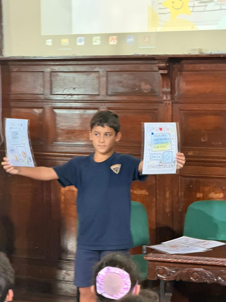 En el marco del proyecto de educación emocional en inglés, los alumnos de 6º A Bilingüe compartieron con alegría y entusiasmo el trabajo realizado, presentando sus aprendizajes ante diferentes grupos de primaria.